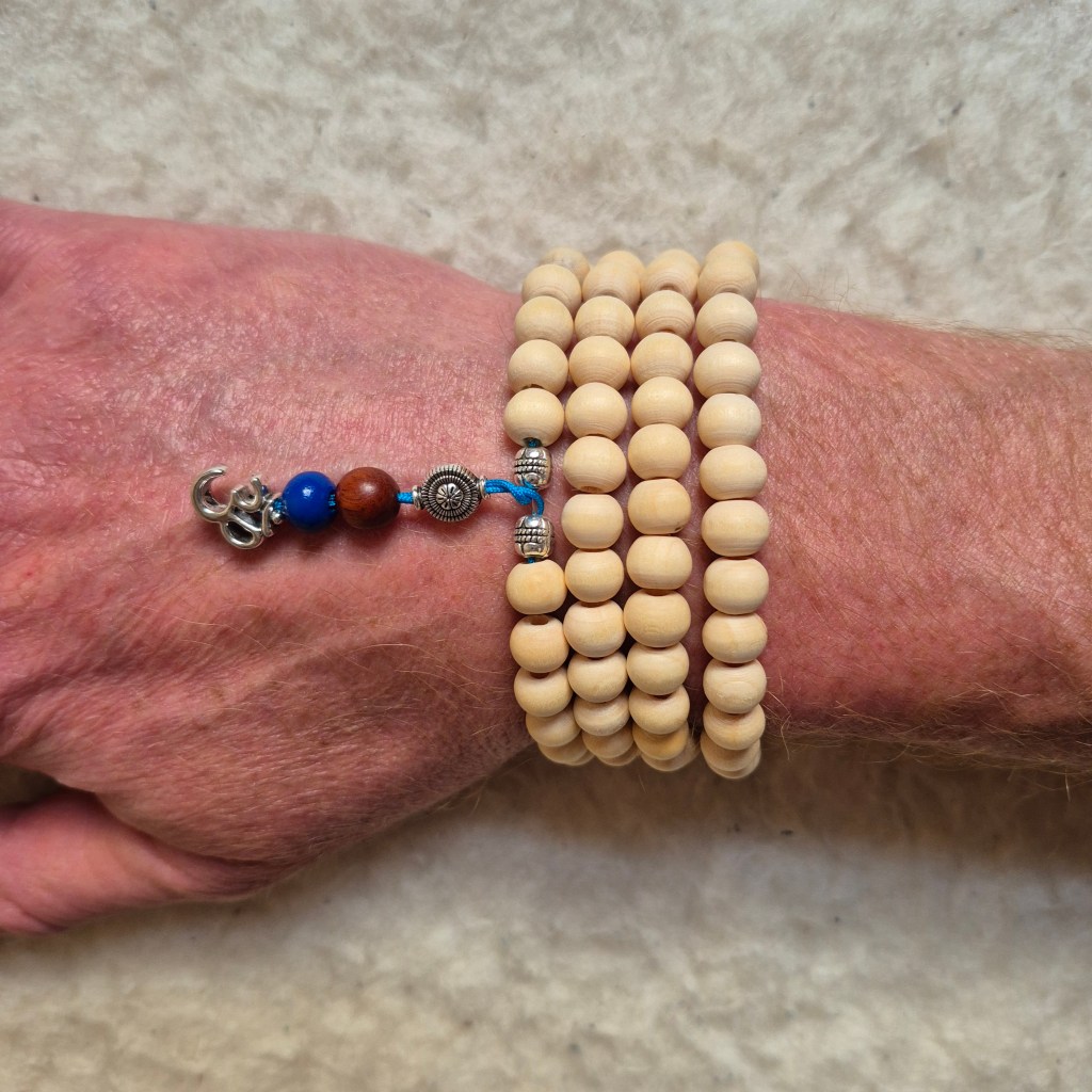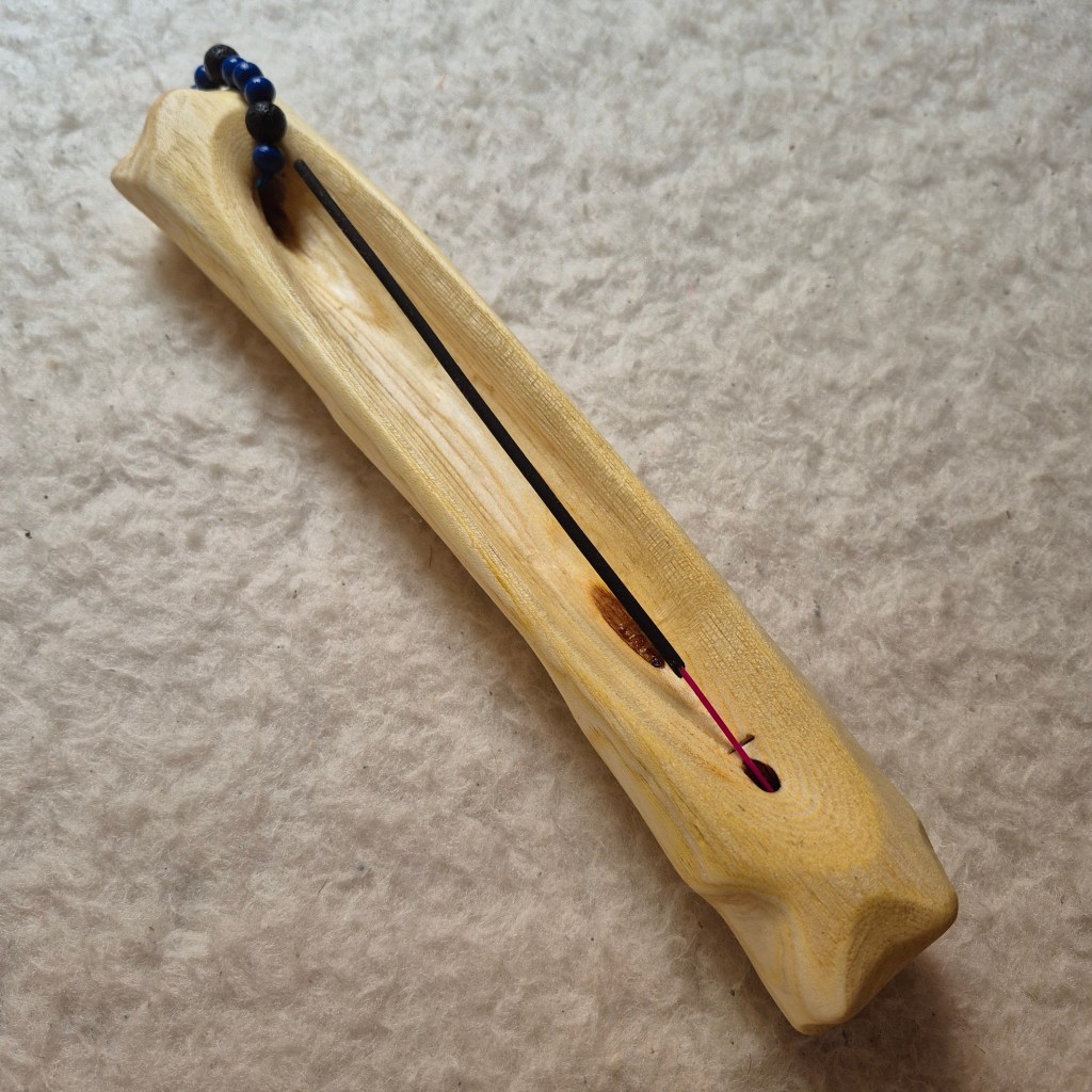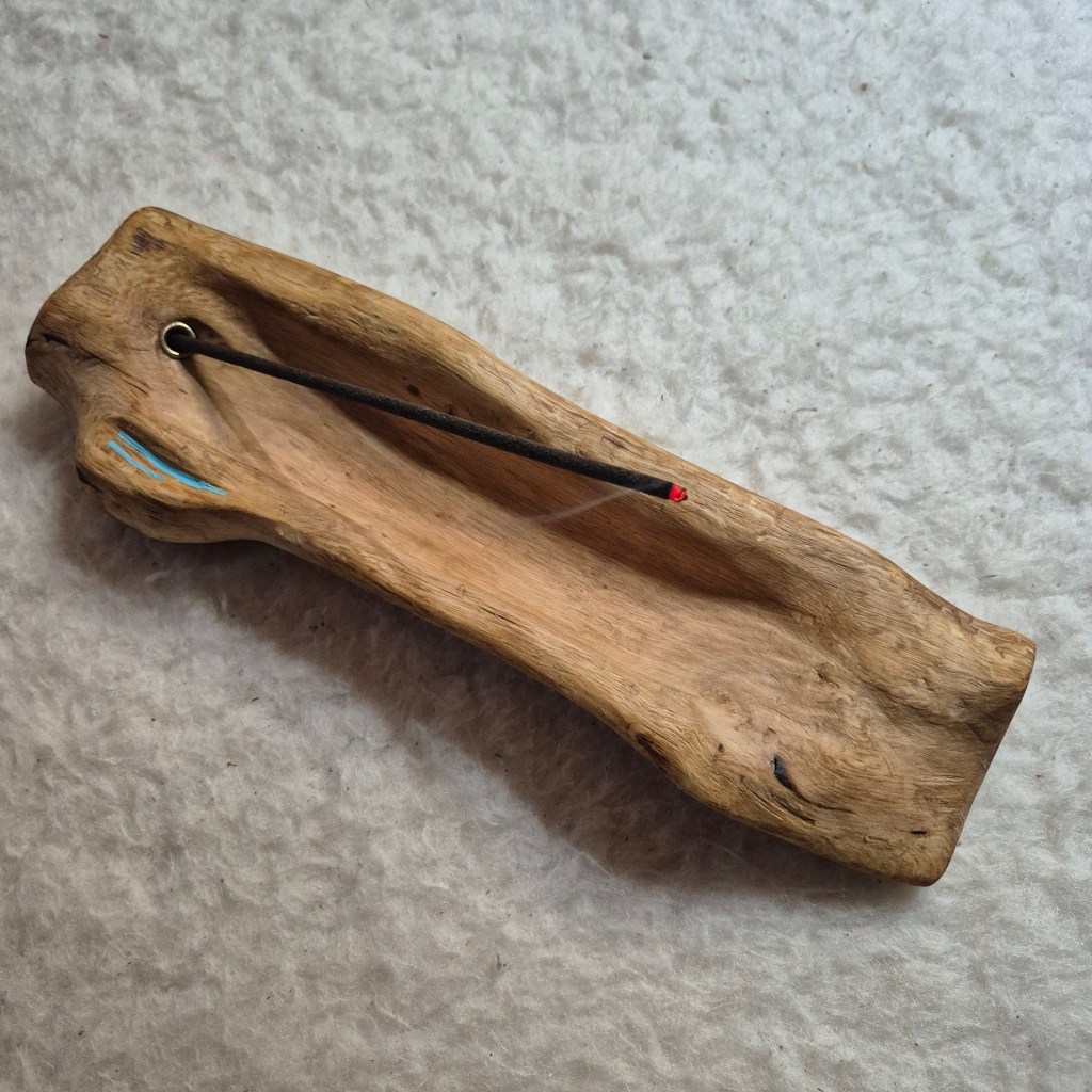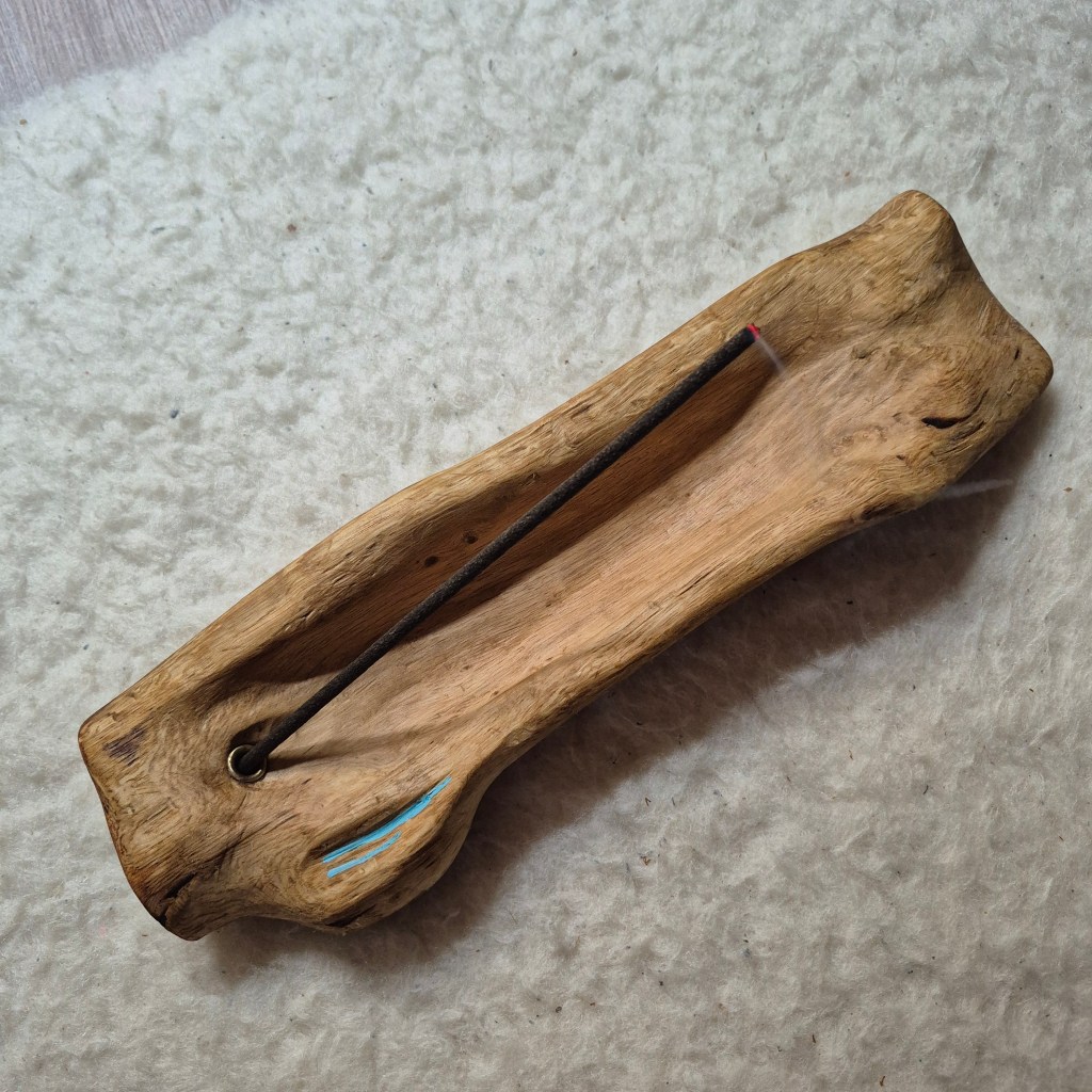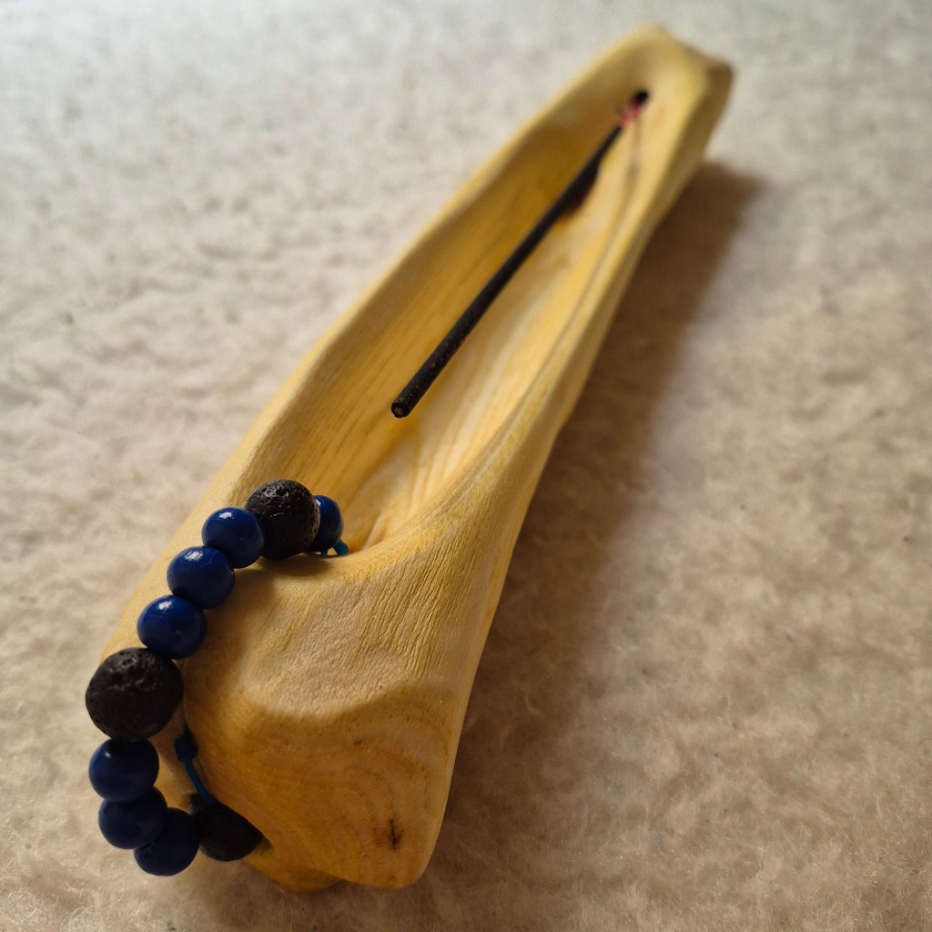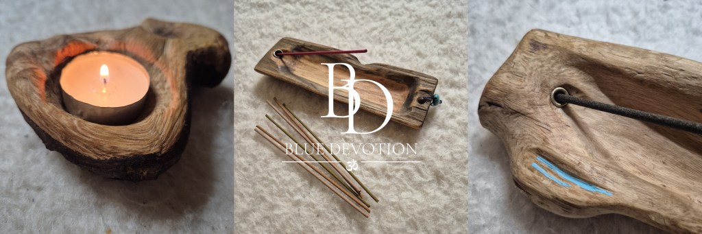 Je me suis lancé dans la sculpture sur bois et tout particulièrement dans le porte-encens et le bougeoir afin de créer une atmosphère méditative. La musique de Blue Devotion interpelle notre Être via le sens de l’ouïe. Le porte-encens et le bougeoir touchent à la fois le sens de la vue et l’odorat. Le sens du toucher quant à lui est mobilisé par les malas (chapelet de 108 perles pour pratiquer le japa, la méditation,)… Ainsi chaque sens est sollicité pour nous amener toujours plus en nous-même, vers la Source de notre Être…